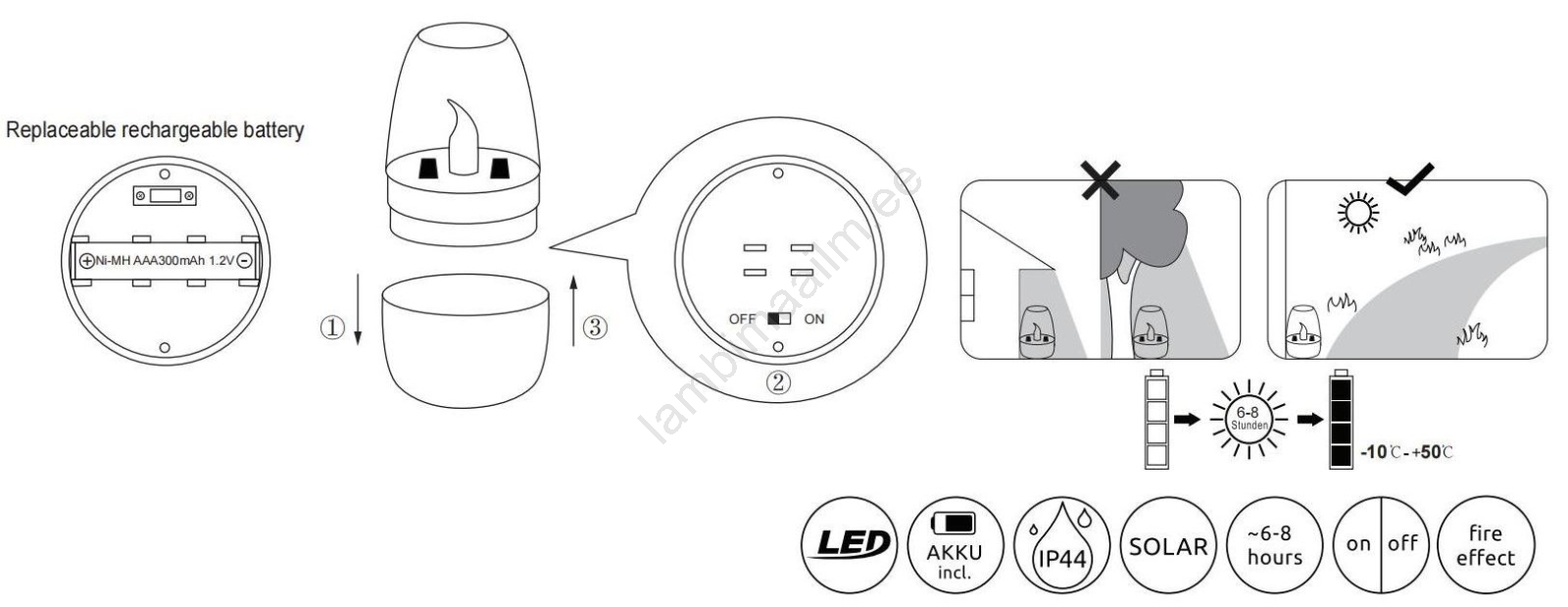 Globo - LED Päikesepaneeliga valgusti LED/0,02W/1,2V 1800K IP44 300 mAh
