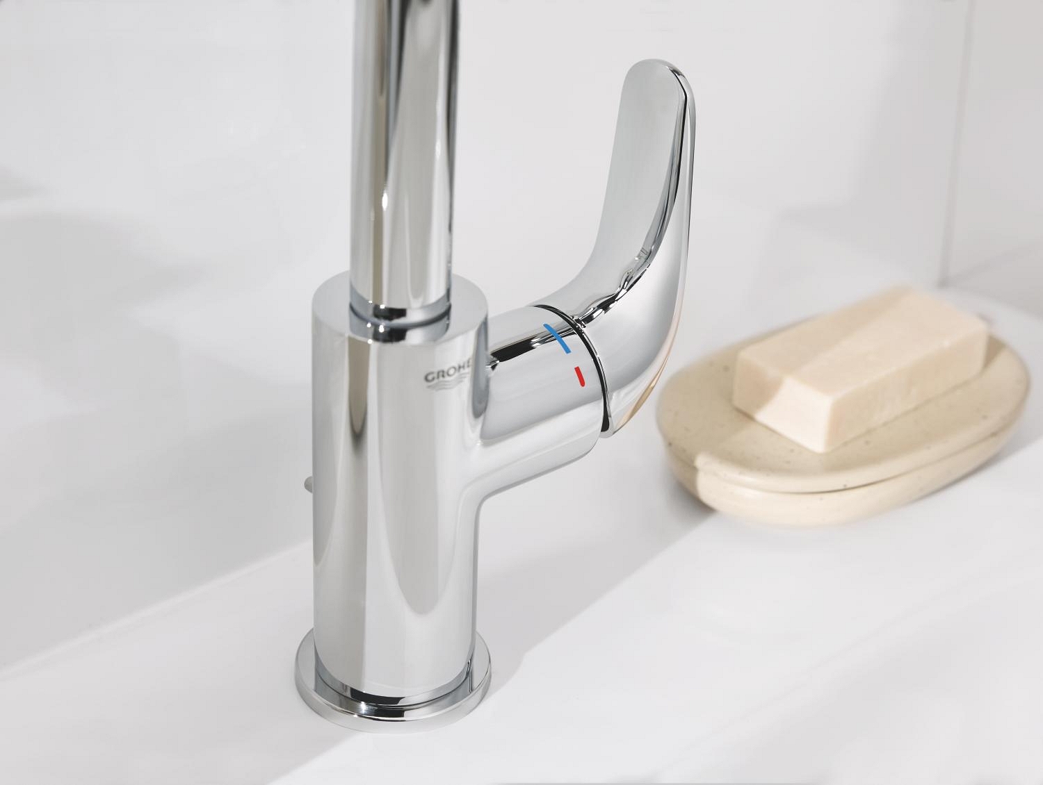 • GROHE Long-Life ES keraamiline kassett külma stardifunktsiooniga säästab energiat, kuna lüliti keskasendis voolab ainult külm vesi.