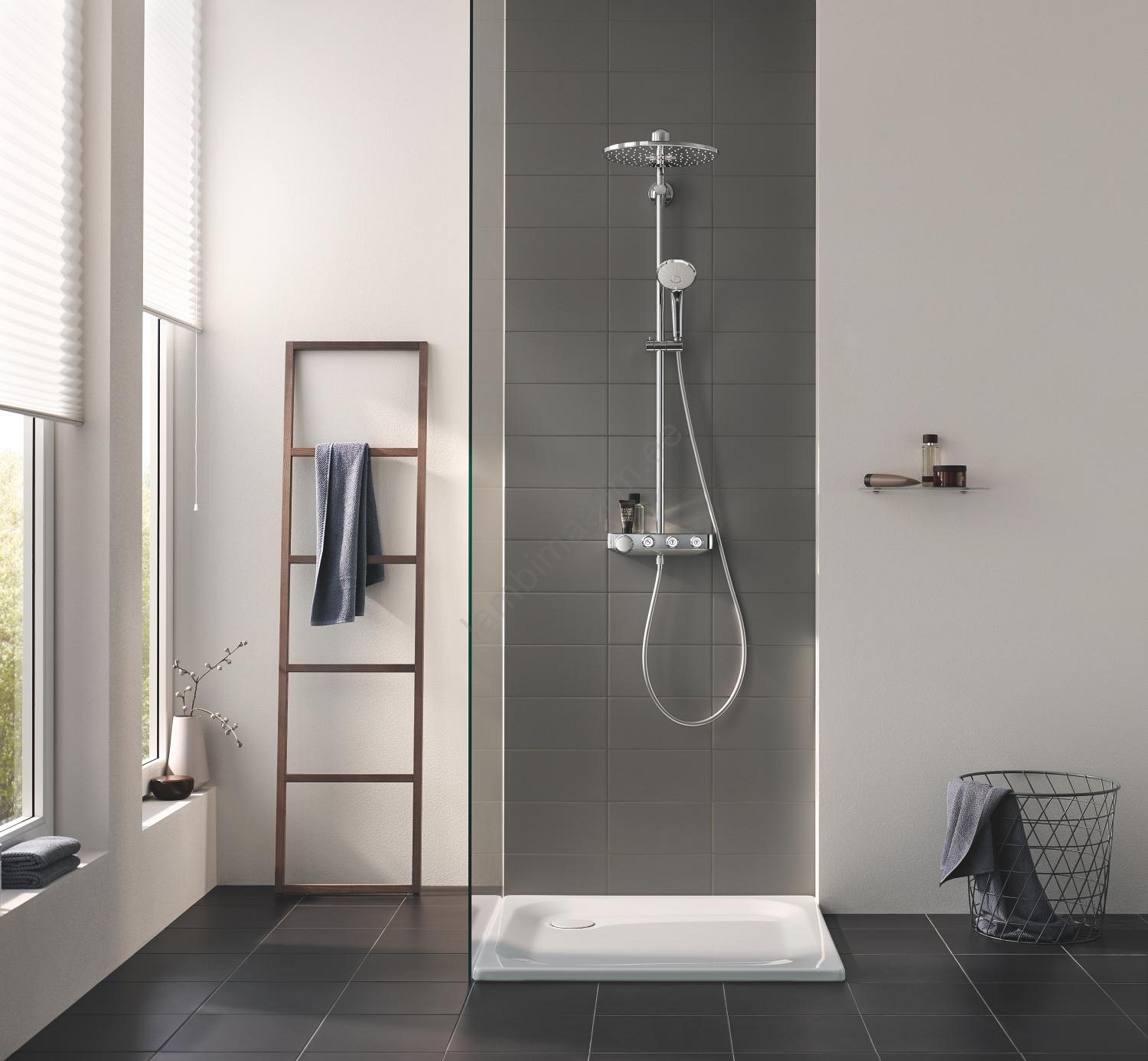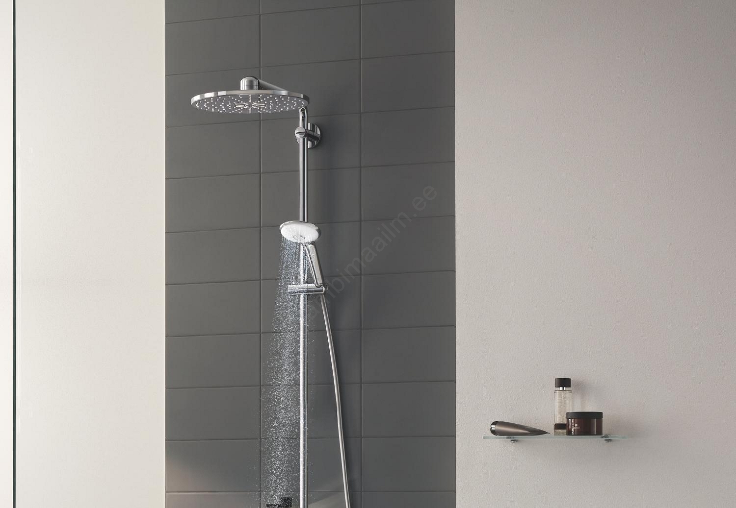 • Integreeritud hoiuala GROHE EasyReach pakub praktilist ruumi dušitarvikute hoidmiseks.