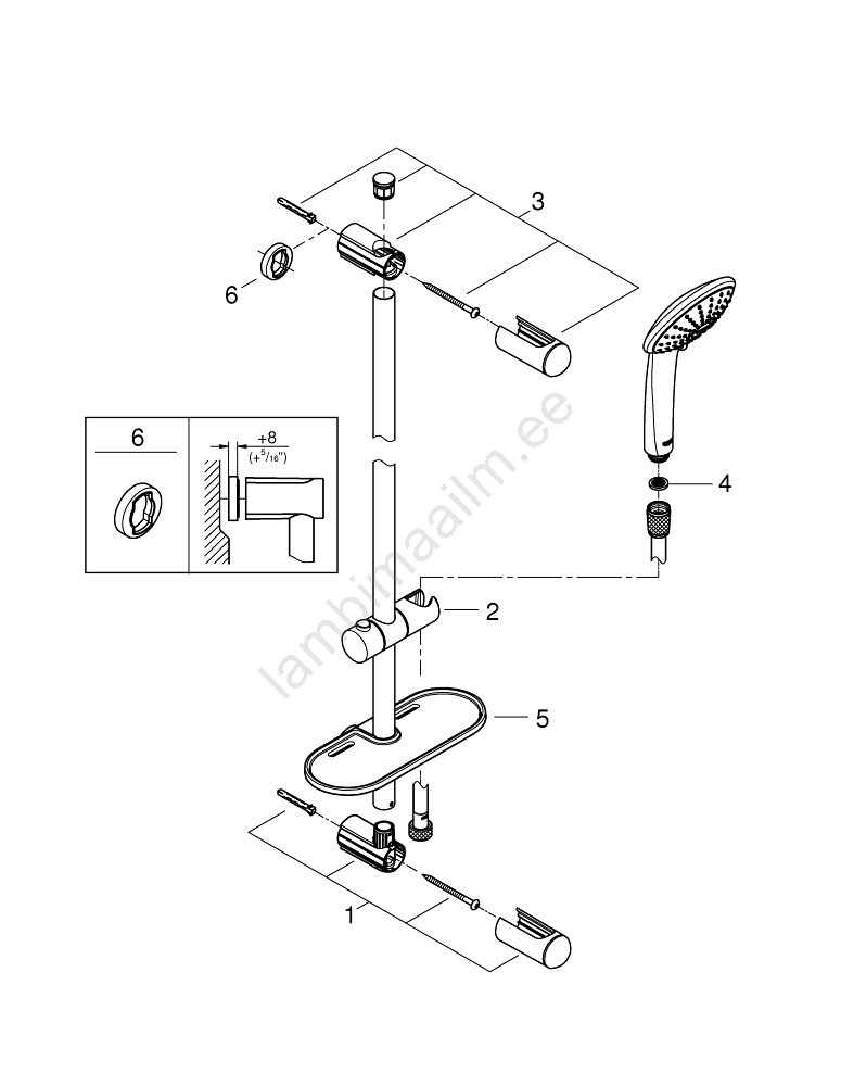 • Praktiline riiul GROHE EasyReach hügieenitarvete mugavaks kättesaamiseks.