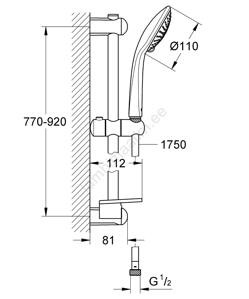 • Dušivars pikkusega 900 mm mugavaks kõrguse reguleerimiseks.