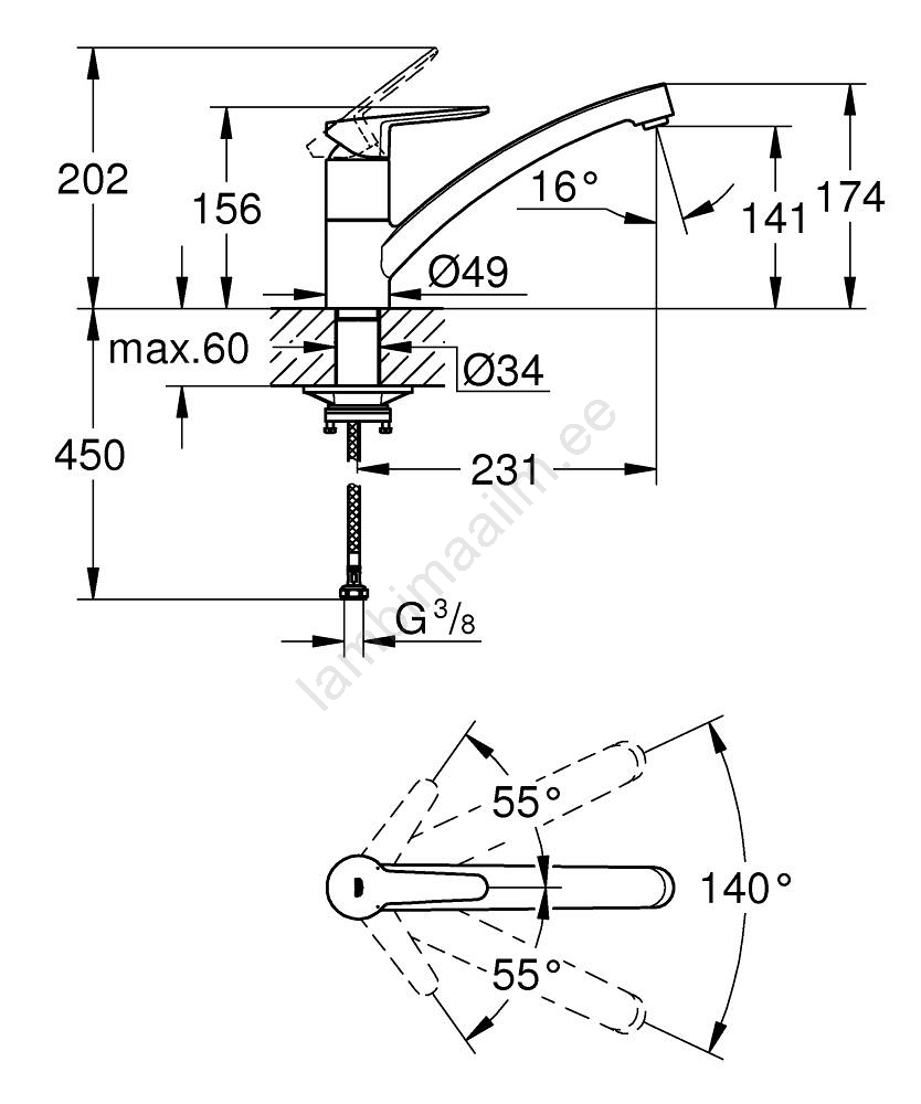 • Pööratav torukujuline väljavool (140°) pakub suuremat paindlikkust.