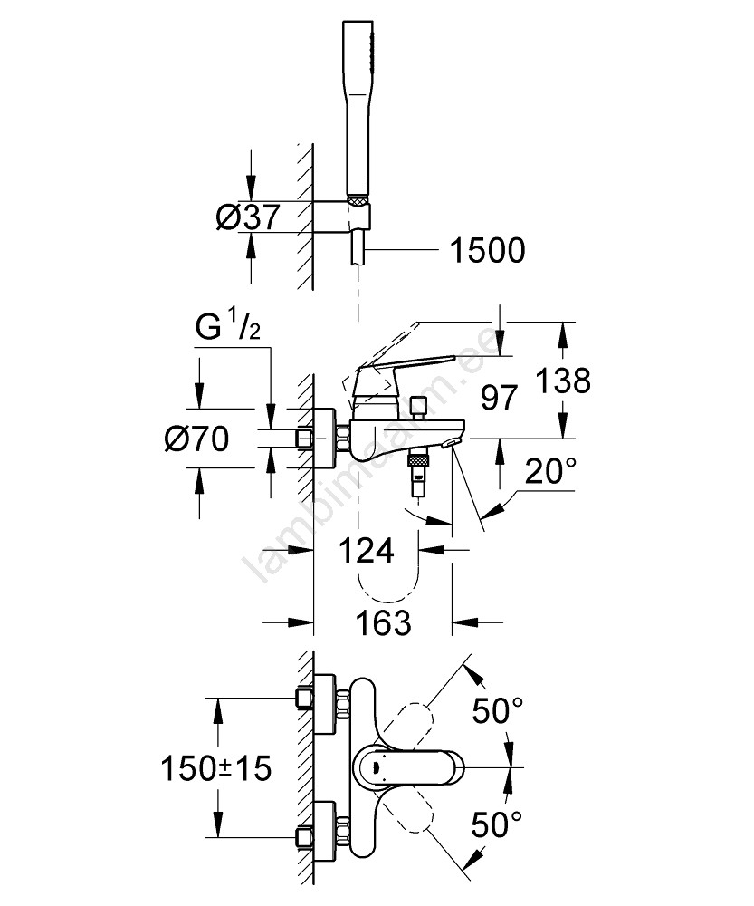 • Seinapealne hoovaga vannisegisti lihtsaks paigaldamiseks.