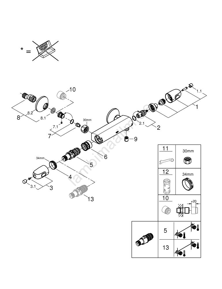 GROHE 34550000 - Termostaatne dušisegisti GROHTHERM 1000 DN 15 kroom | Lambimaailm