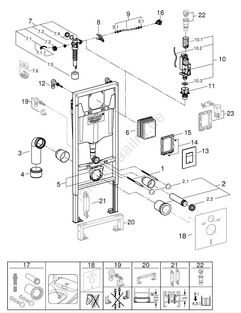 • 3-ühes komplekt täiuslikuks seinakinnituse WC-süsteemi paigalduseks.