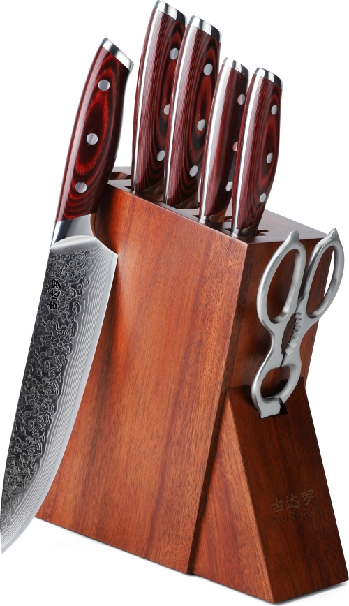 Gudaro - KENSHO 7-osaline kööginugade komplekt akatsiapuust alusega