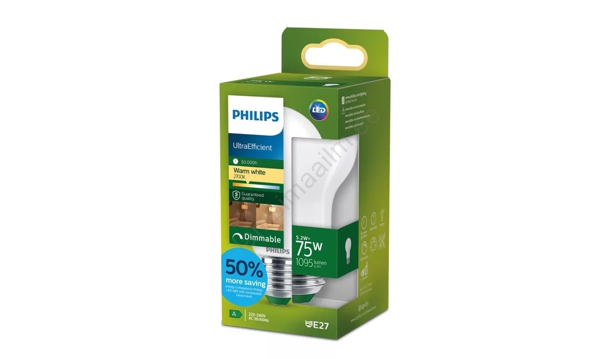 • Hämardatav LED-pirn ULTRAEFFICIENT Philips A60 E27/5,2W/230V 2700K