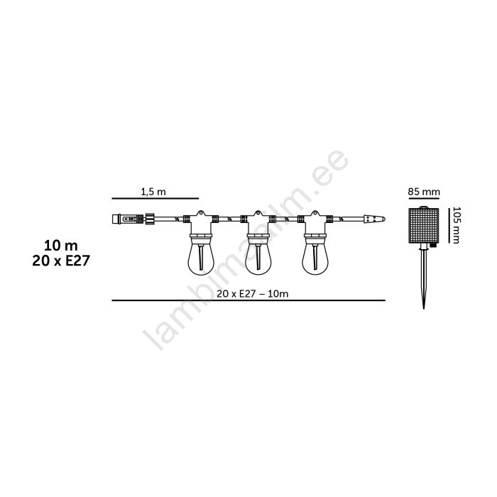 • IP54-kaitse tagab valgusketi kaitse vee ja tolmu eest.