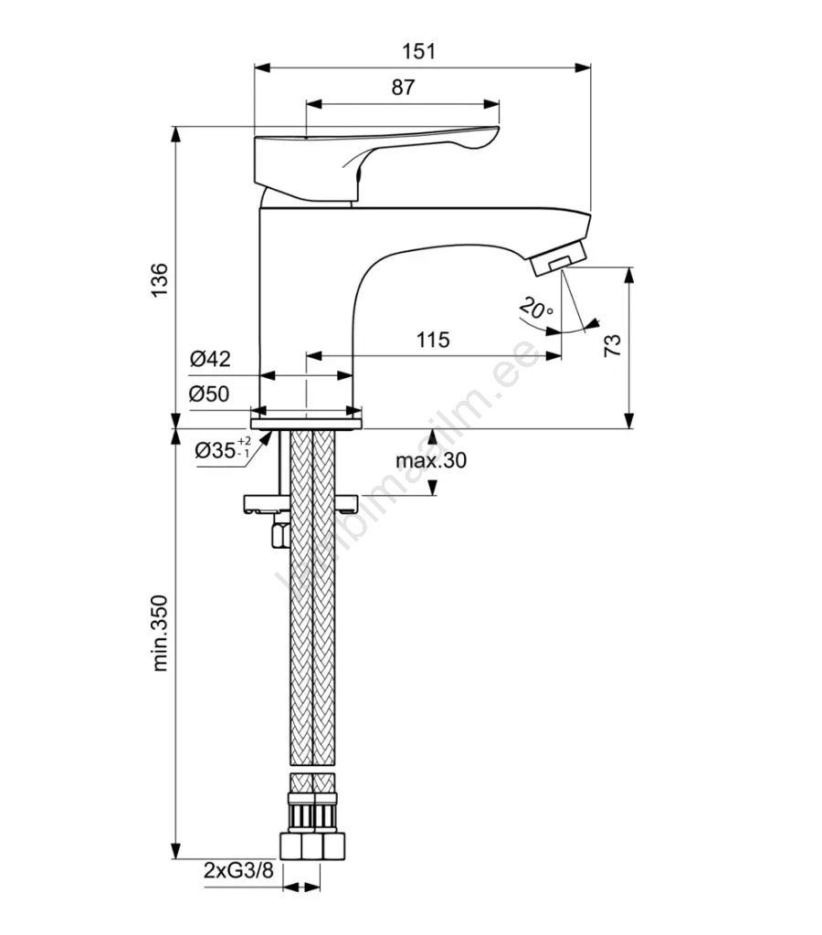 • Ühendamiseks kasutatakse paindlikku voolikut mõõduga G 3/8".