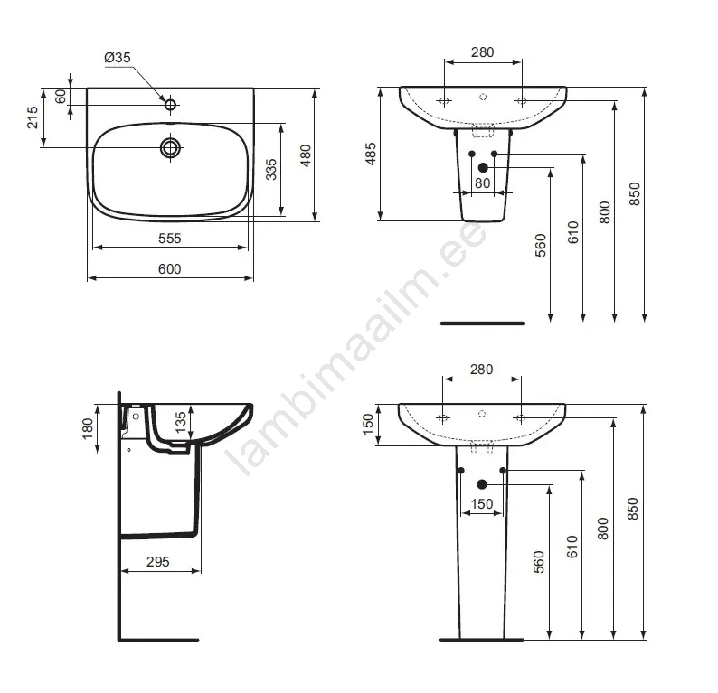 • Esteetilise sifoni varjamise huvides saab valamu kombineerida sambaga või poolsambaga.