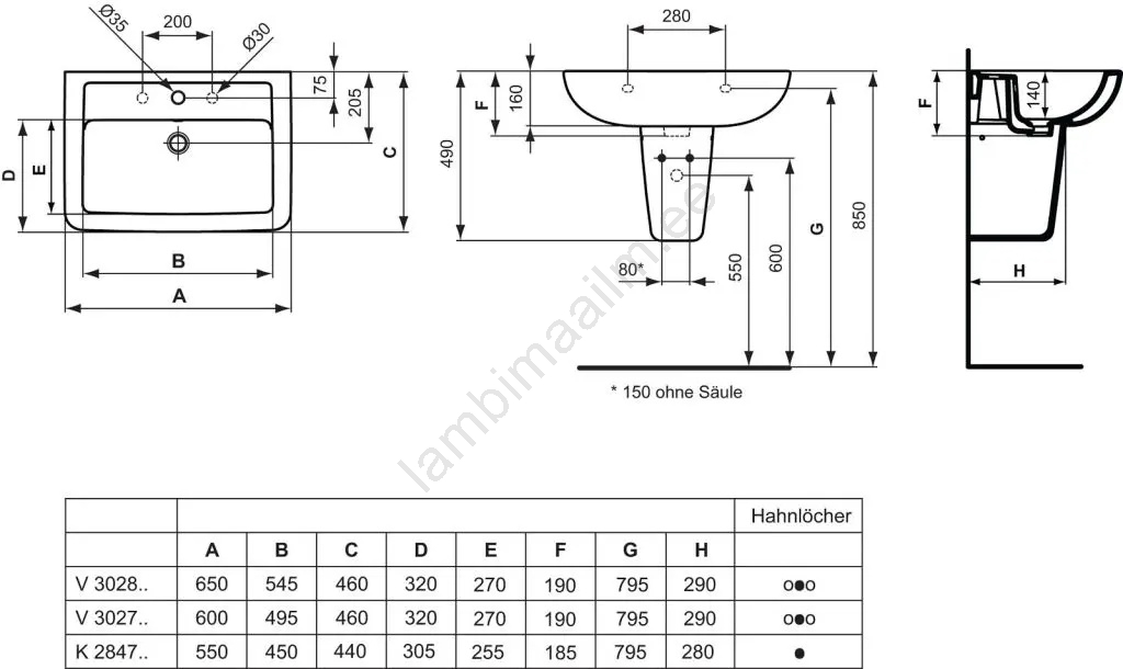 • Valamu sifoon ei kuulu komplekti ja tuleb tellida eraldi.