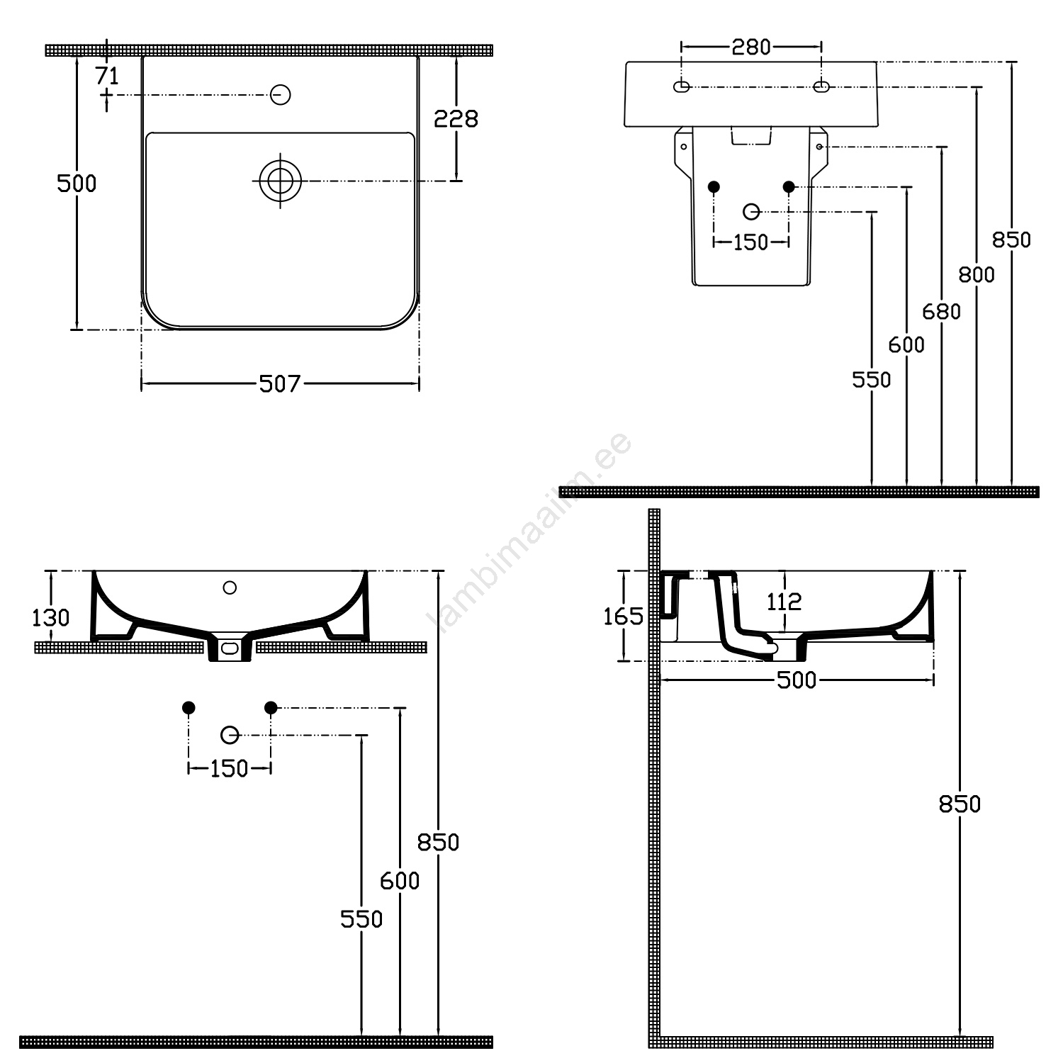 Isvea - Lauale/seinale paigaldatav valamu SOTT AQUA 50x50 cm keraamika/valge | Lambimaailm