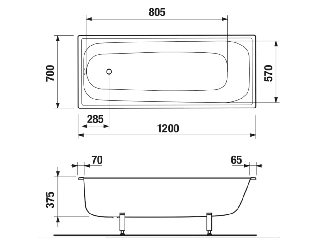 • Ristkülikukujuline vann tugevast emailitud terasest.
