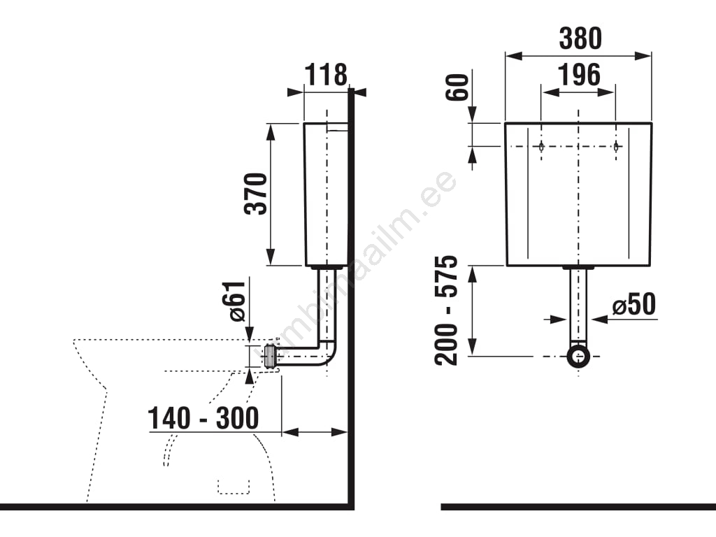 • Tänu reguleeritavusele (200-575) saab paagi paigaldada erinevatele kõrgustele.