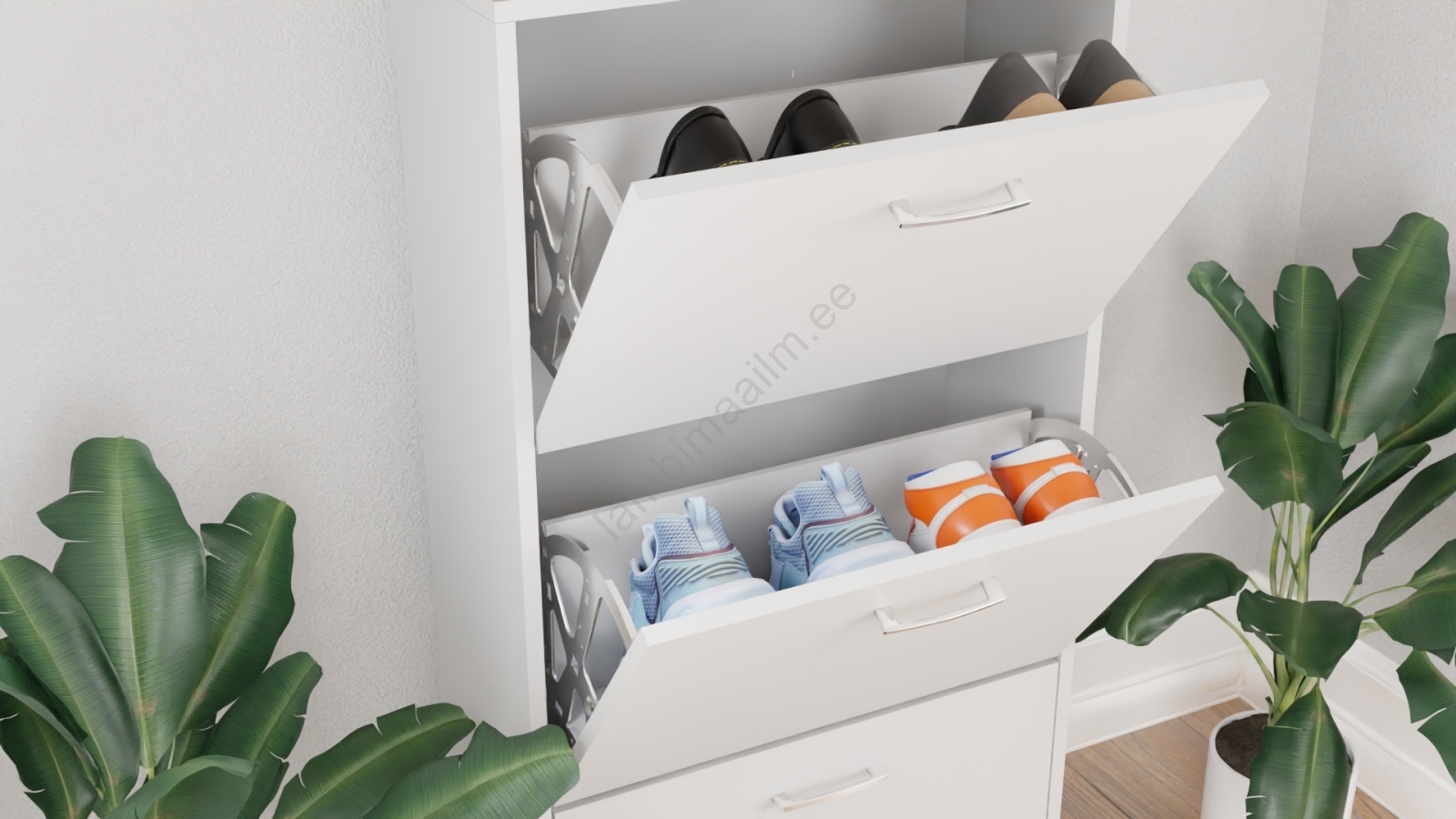 • Tänu oma saledale kujule võtab see 3-korruseline kingakapp põrandal vähe ruumi, pakkudes samal ajal küllaldaselt hoiuruumi.