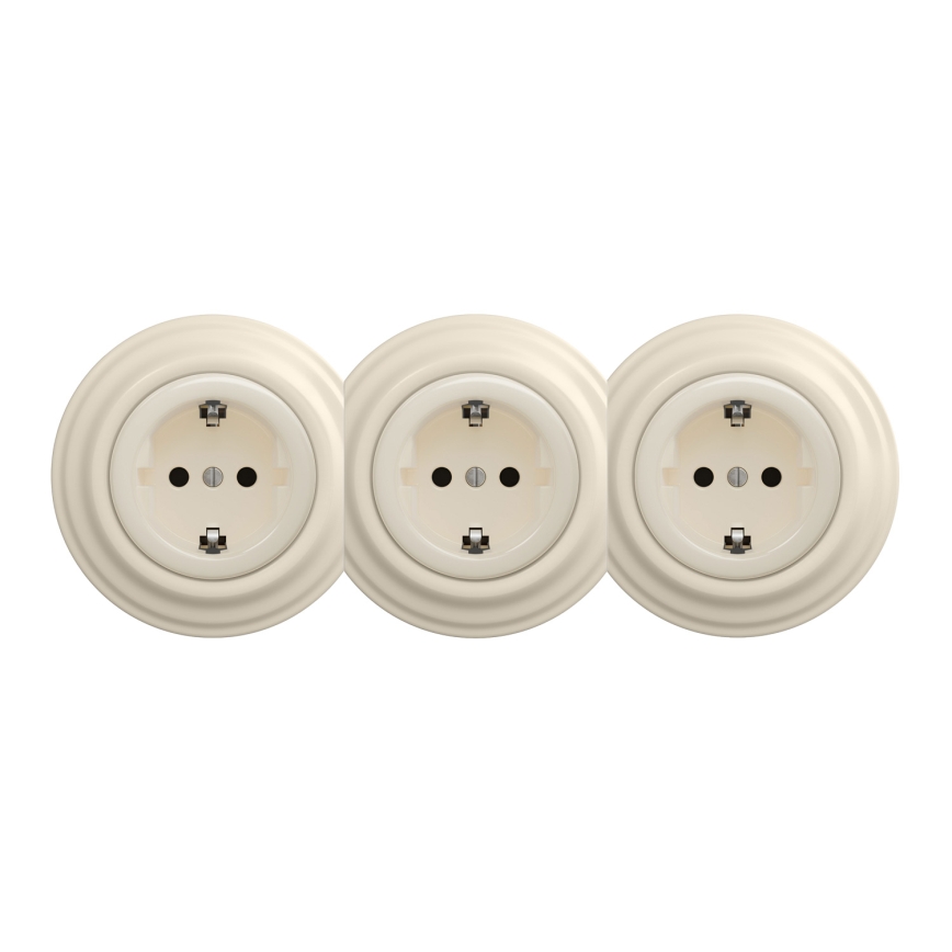 Kliklap - Kolmekordne retro kodune SCHUKO-pistikupesa raamiga 230V beež