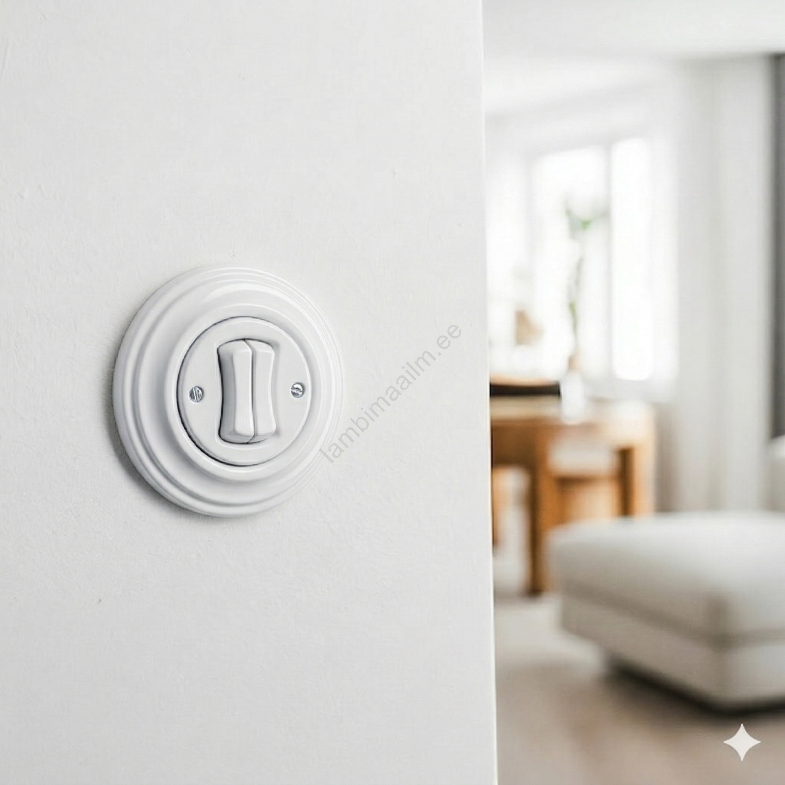 • Kliklap - retro-seeria lüliti raamiga nr 5, keraamiline valge