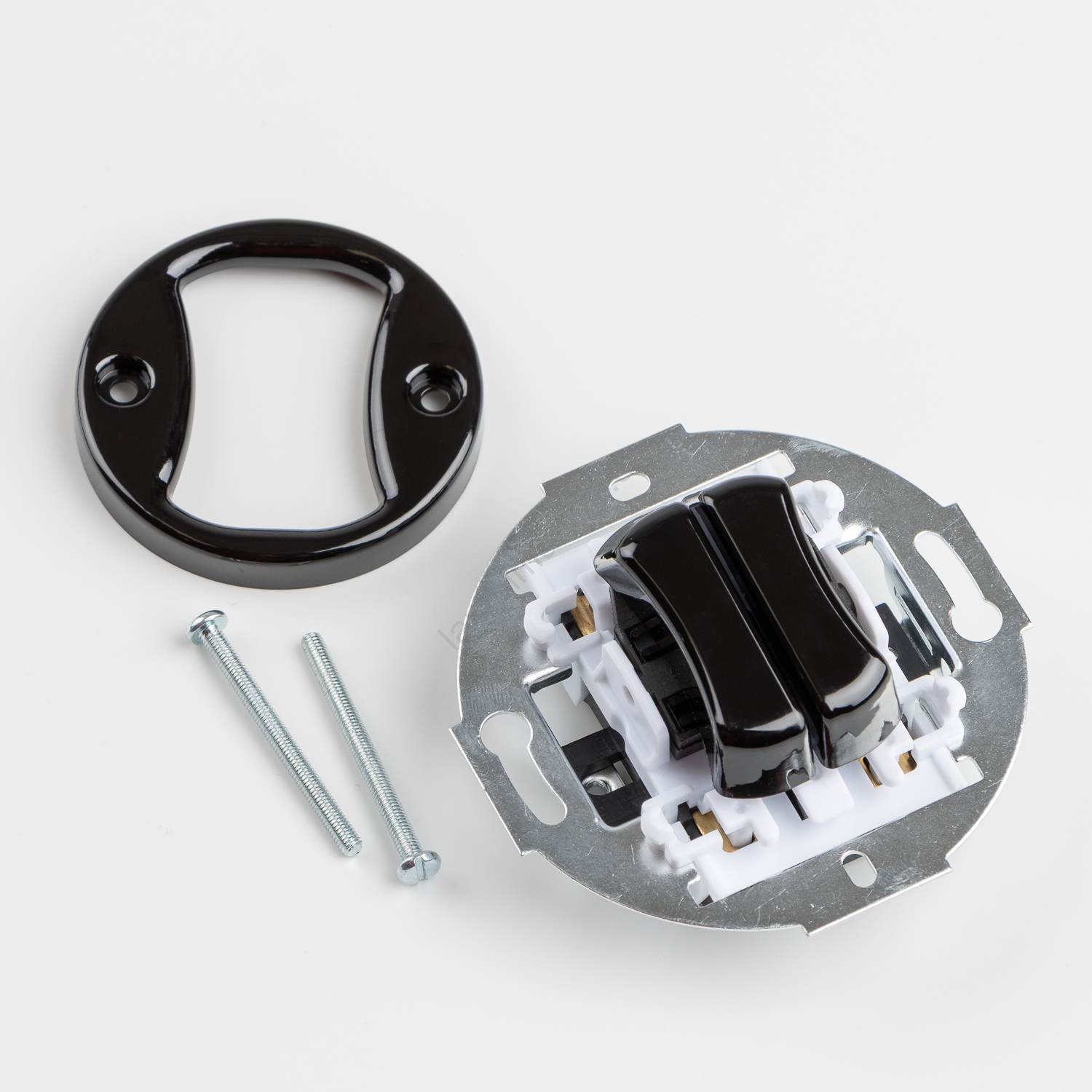 • Kliklap - Retro kaheklahviline trepi lüliti raamiga nr. 6+6 must