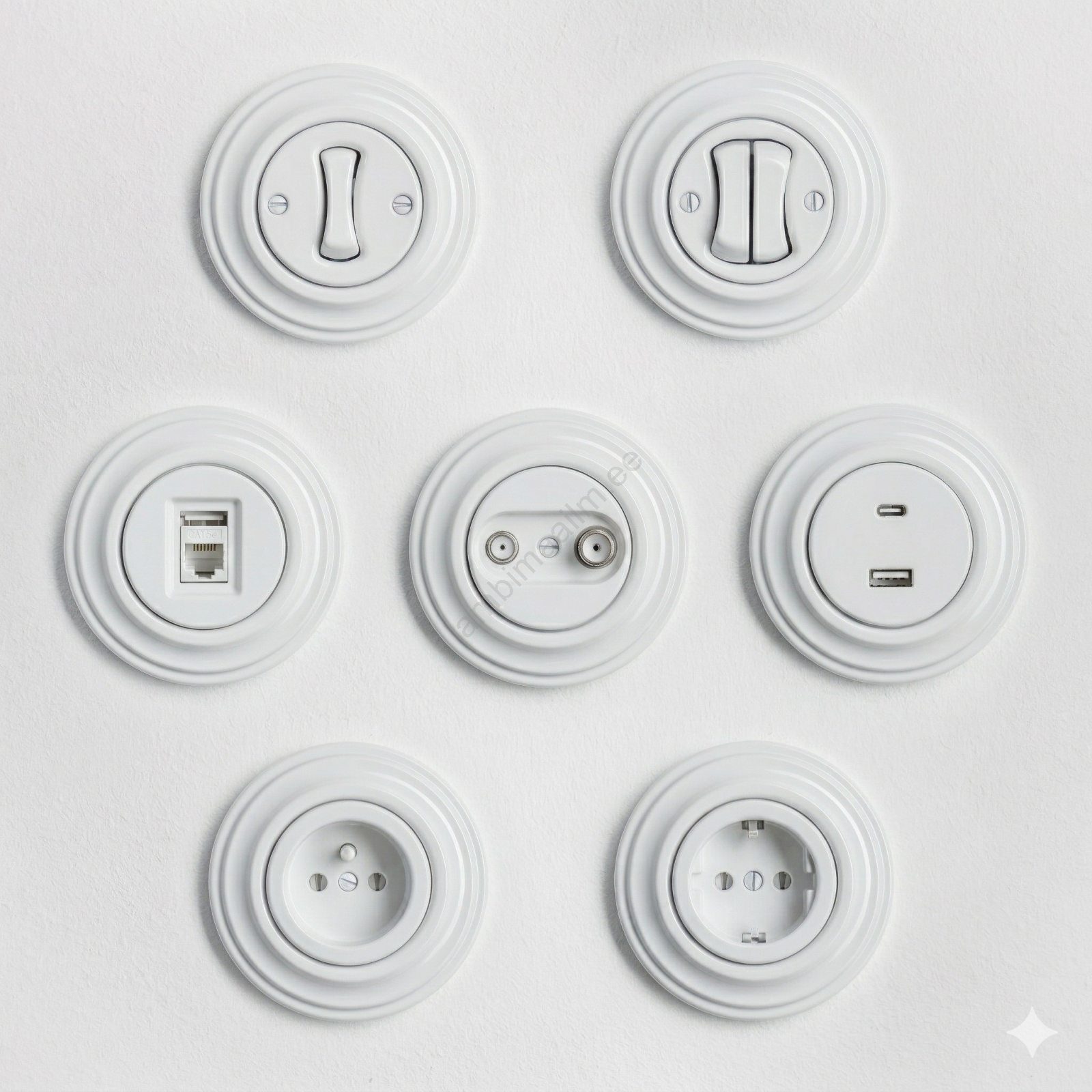 • Kliklap - Retro TV+R pistikupesa (läbiv) raamiga keraamiline valge