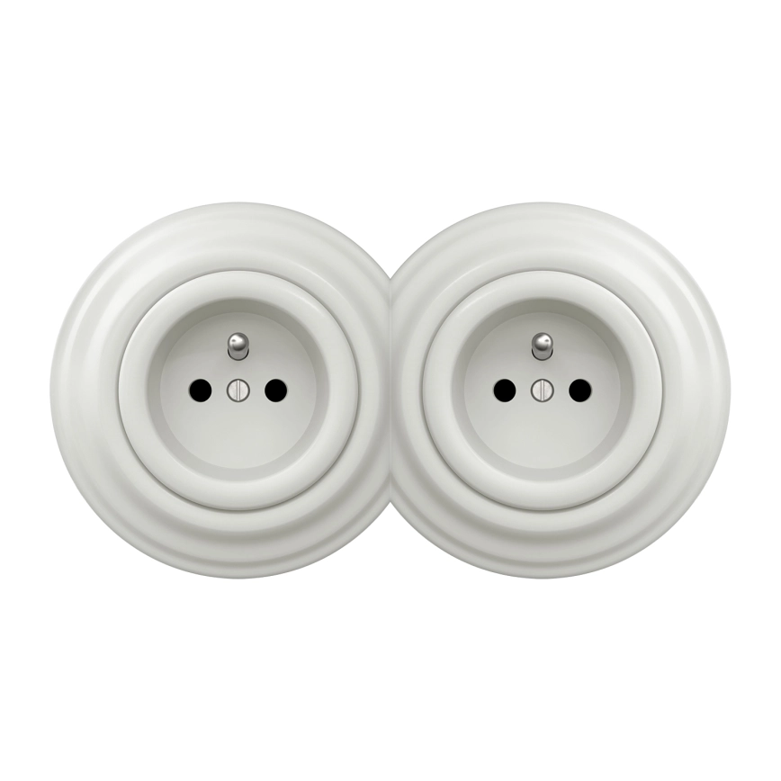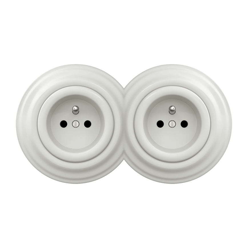 Kliklap - kodune topelt-retro pistikupesa raamiga, 230 V, keraamiline, valge