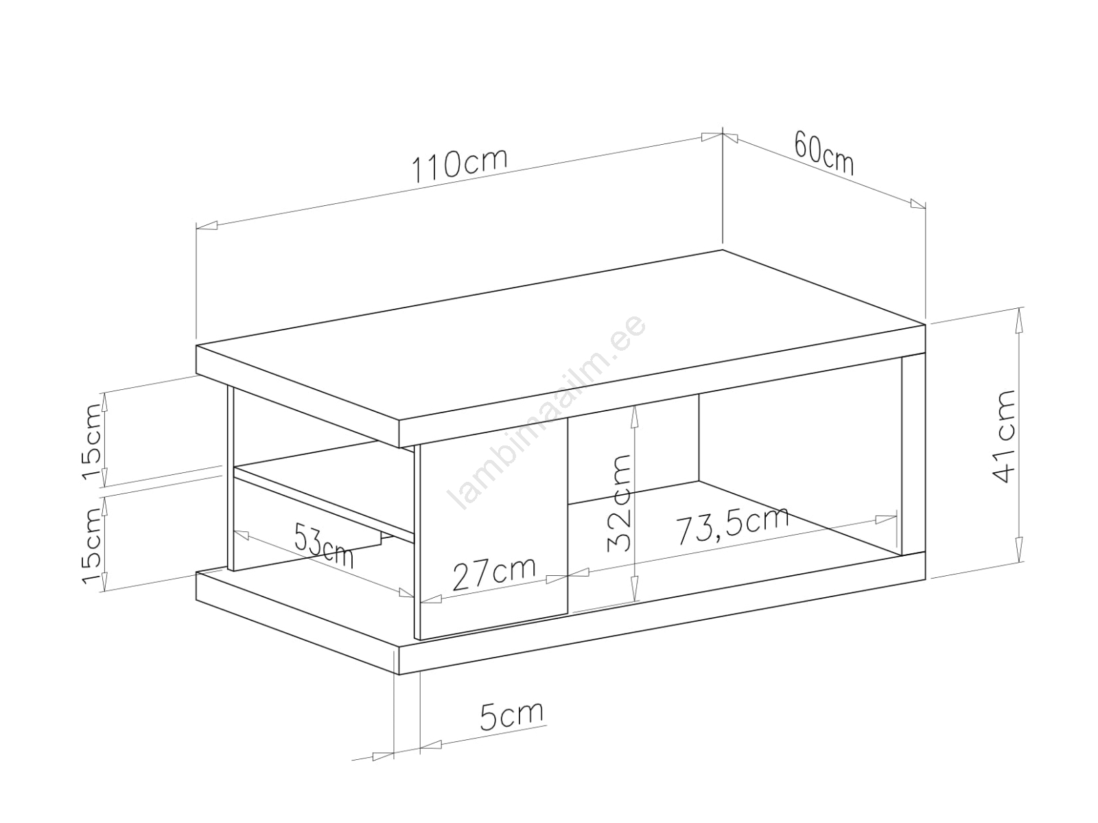 • Kohvilaud riiuliga ja panipaigaga LORA artisan-tamm/must