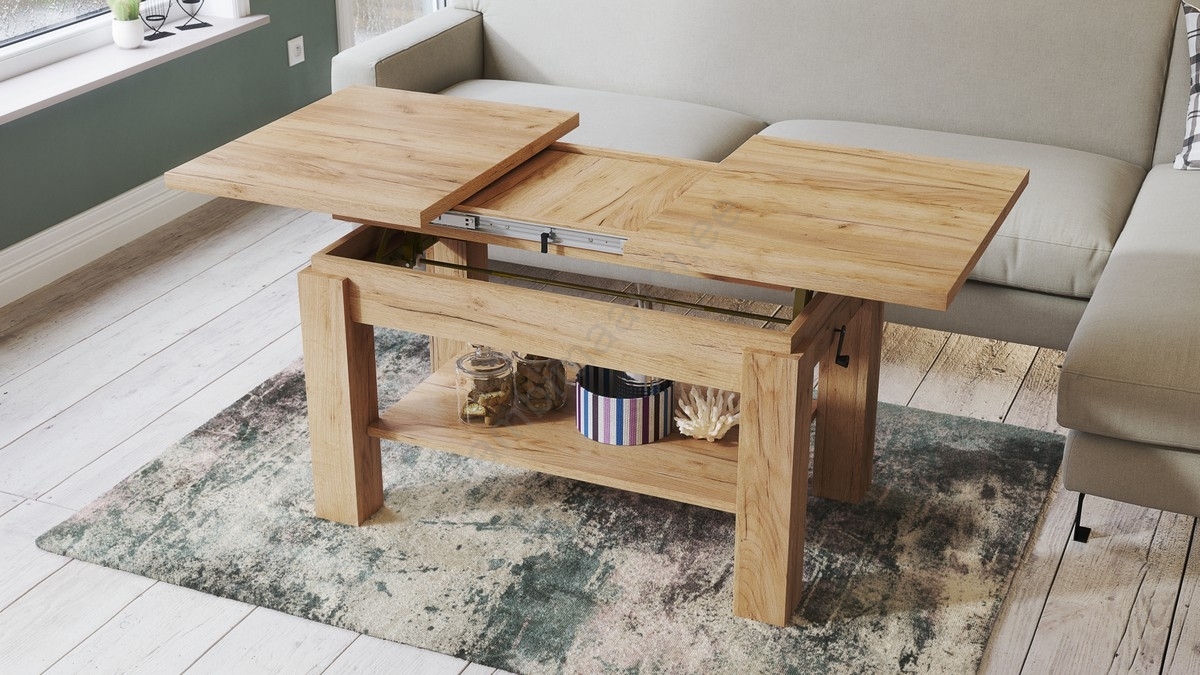 • Laiendatav kohvilaud/söögilaud riiuliga ADONIS Craft-tamm