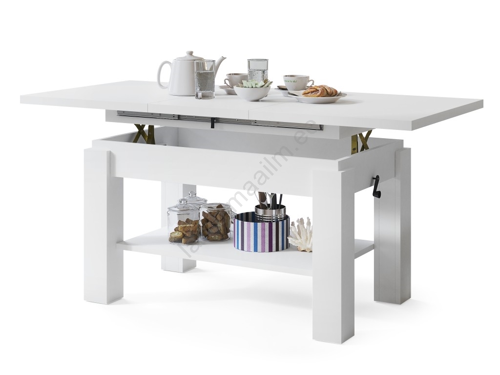 Laiendatav kohvilaud riiuliga ADONIS 110/150x68 cm valge