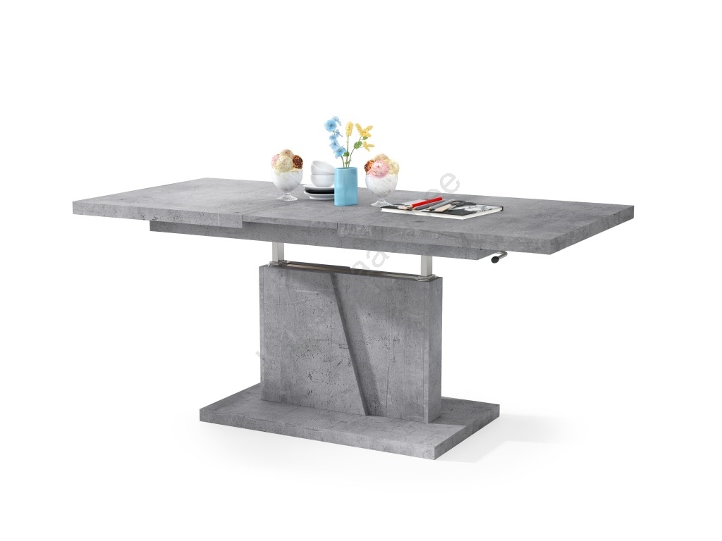 Pikendatav kohvilaud/söögilaud NINO tõstetava lauaplaadiga, betoonhall