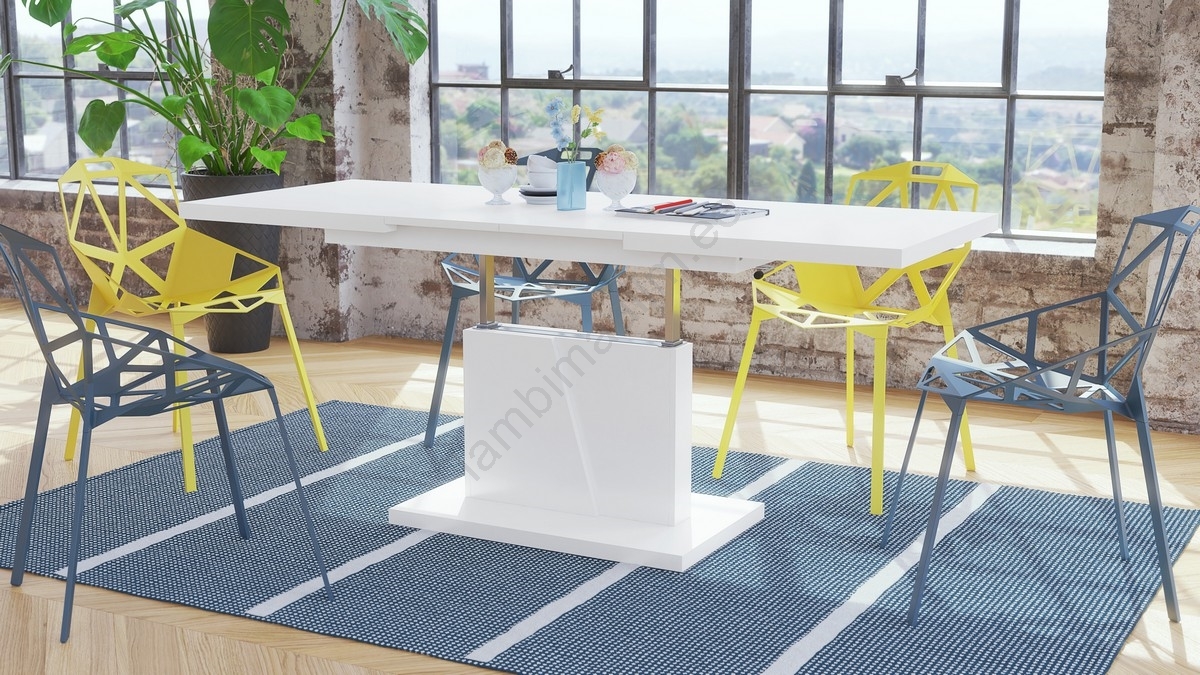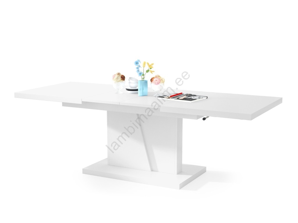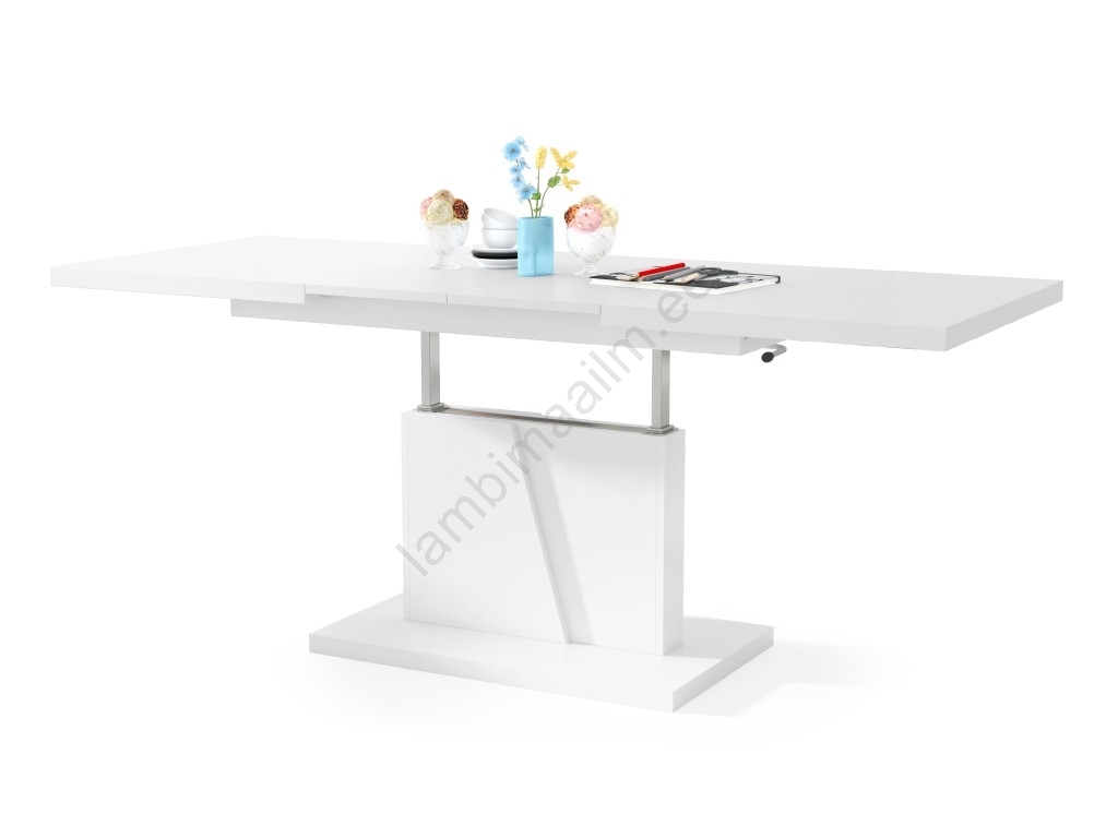 Laiendatav kohvi- ja söögilaud NINO tõstetava lauaplaadiga, valge