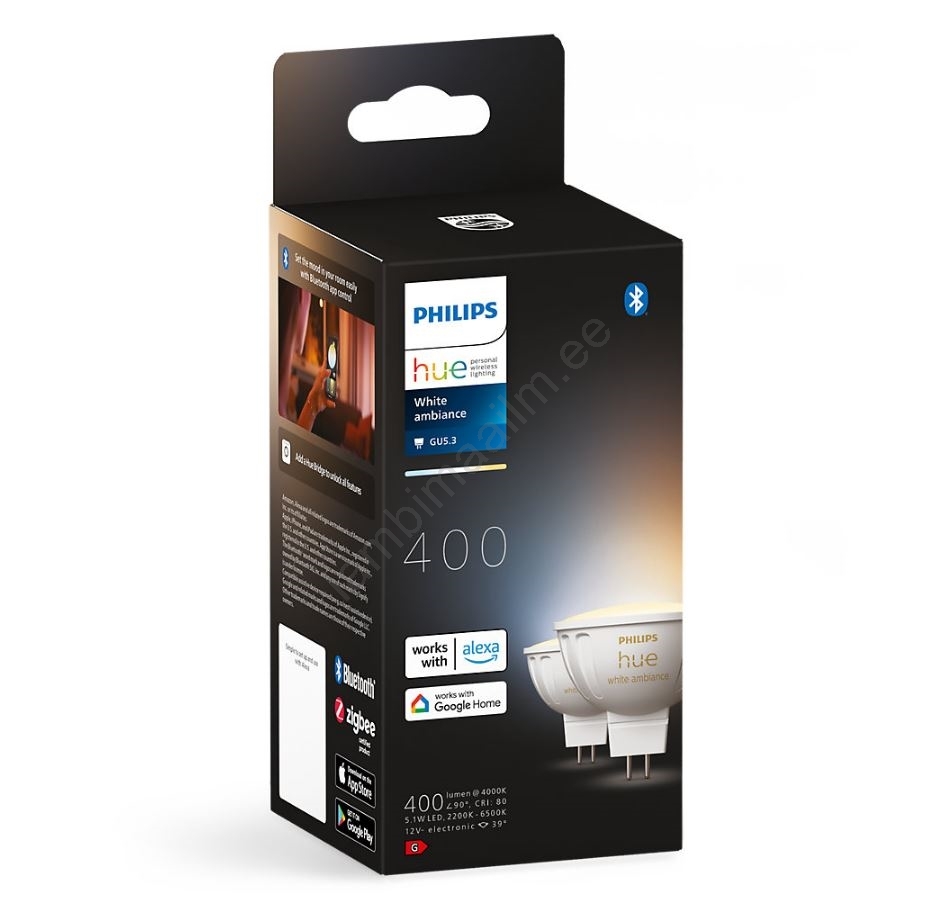 KOMPLEKT 2x LED Hämardatav pirn Philips Hue WA GU5,3/MR16/5,1W/12V 2200-6500K | Lambimaailm