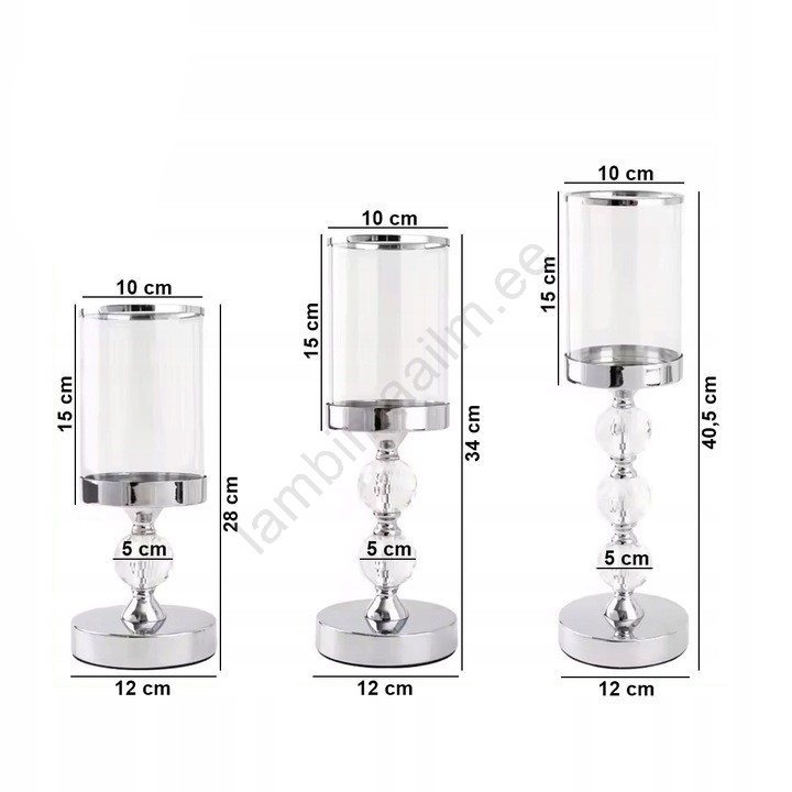 Komplekt 3 küünlajalga, läikiva kroomviimistlusega | Lambimaailm