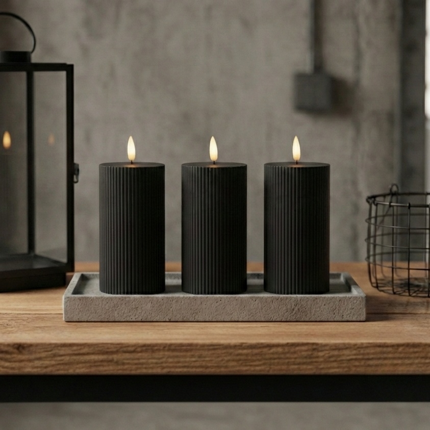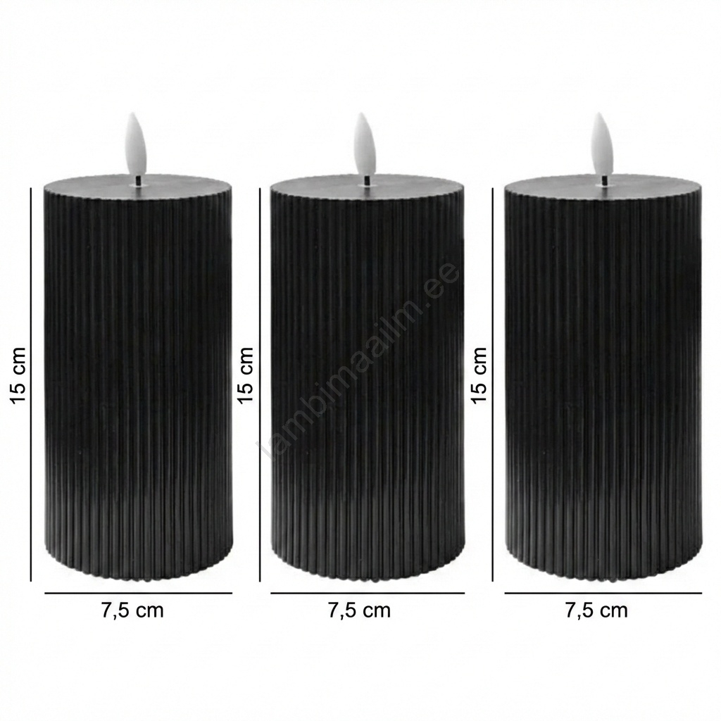 • Komplekt 3x LED-küünalt BRILLO LED/2xAA 15 cm must + kaugjuhtimispult