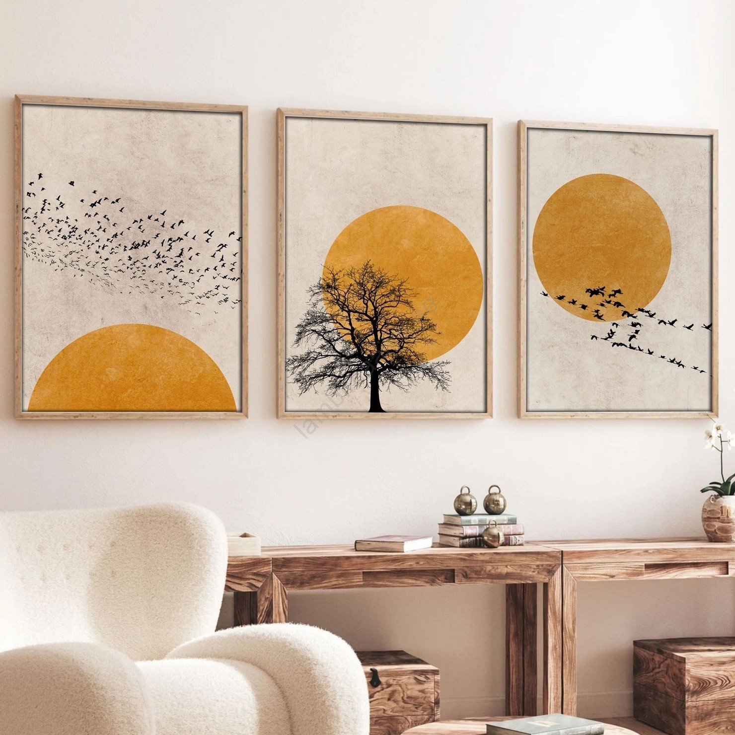 Komplekt 3x pilt fotoraamiga 50x70 cm beež/oranž | Lambimaailm