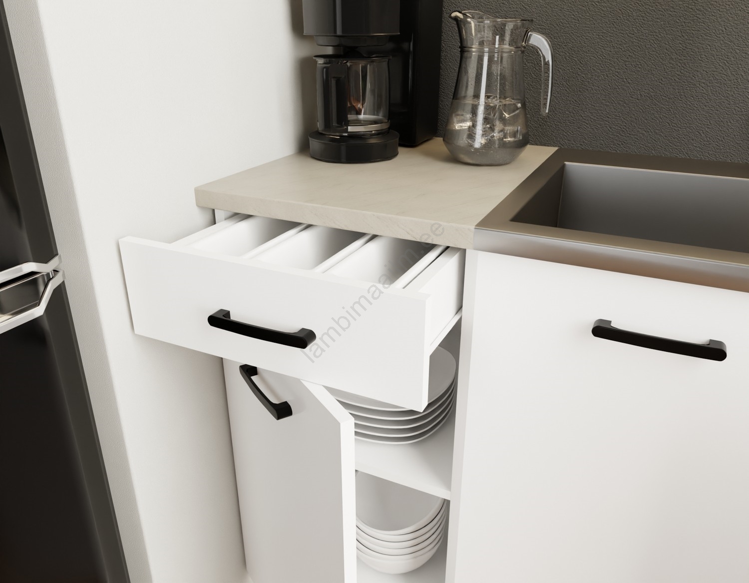 • Kappide paigutus on modulaarne, köögi saate kohandada vastavalt oma soovidele.