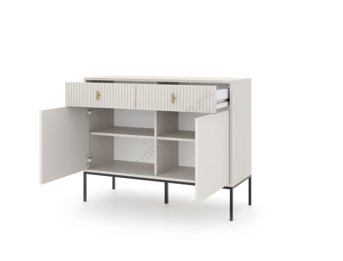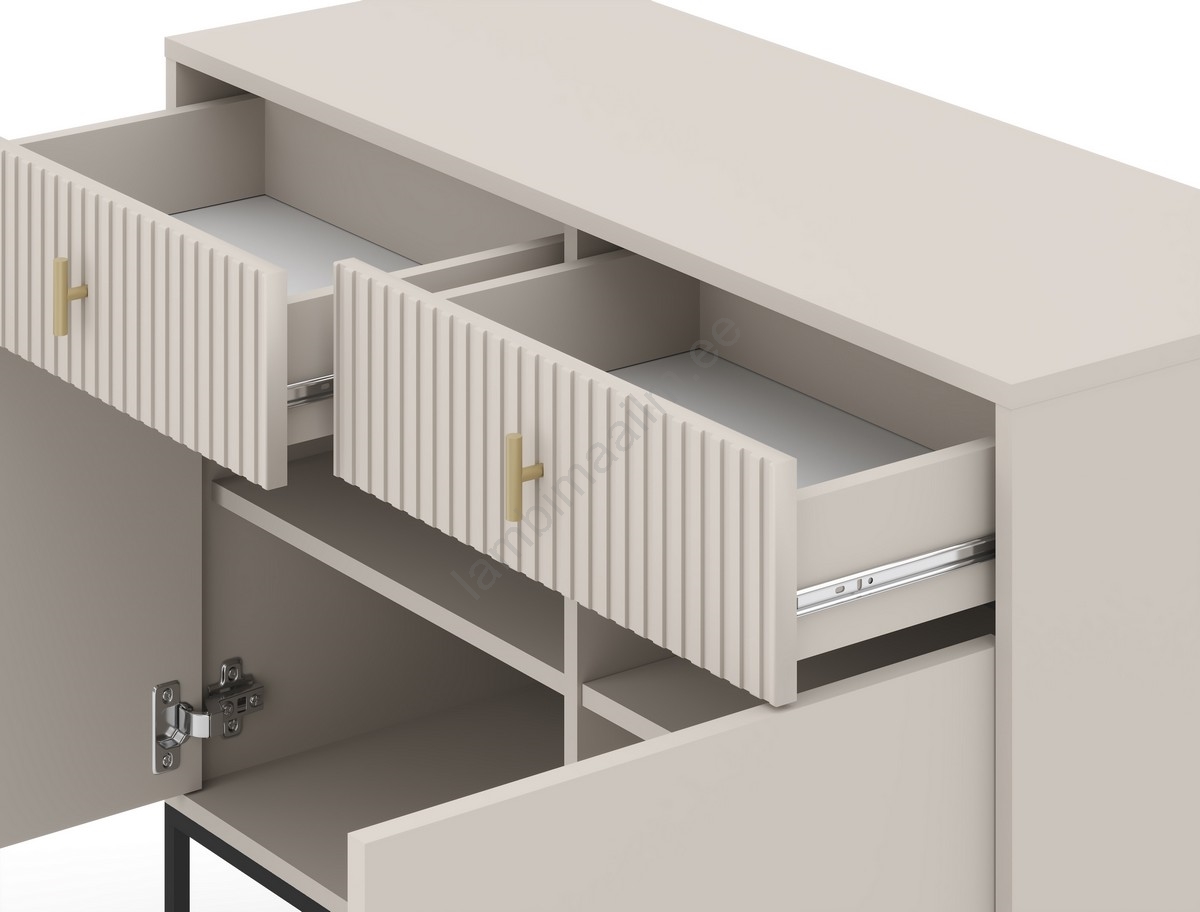 • Sellel on kaks alumist ust mahuka hoiuruumiga ning kaks sahtlit käepidemetega ja vertikaalsete soontega.