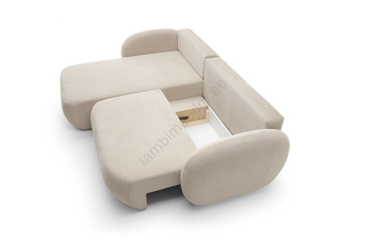 L-kujuline lahtikäiv nurgadiivan OLBIA, vasakpoolne, beež, hoiukastiga | Lambimaailm