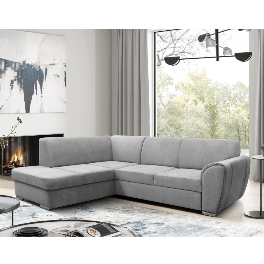 SERPA L-kujuline vasakpoolne lahtikäiv nurgadiivanvoodi hoiukastiga, hall