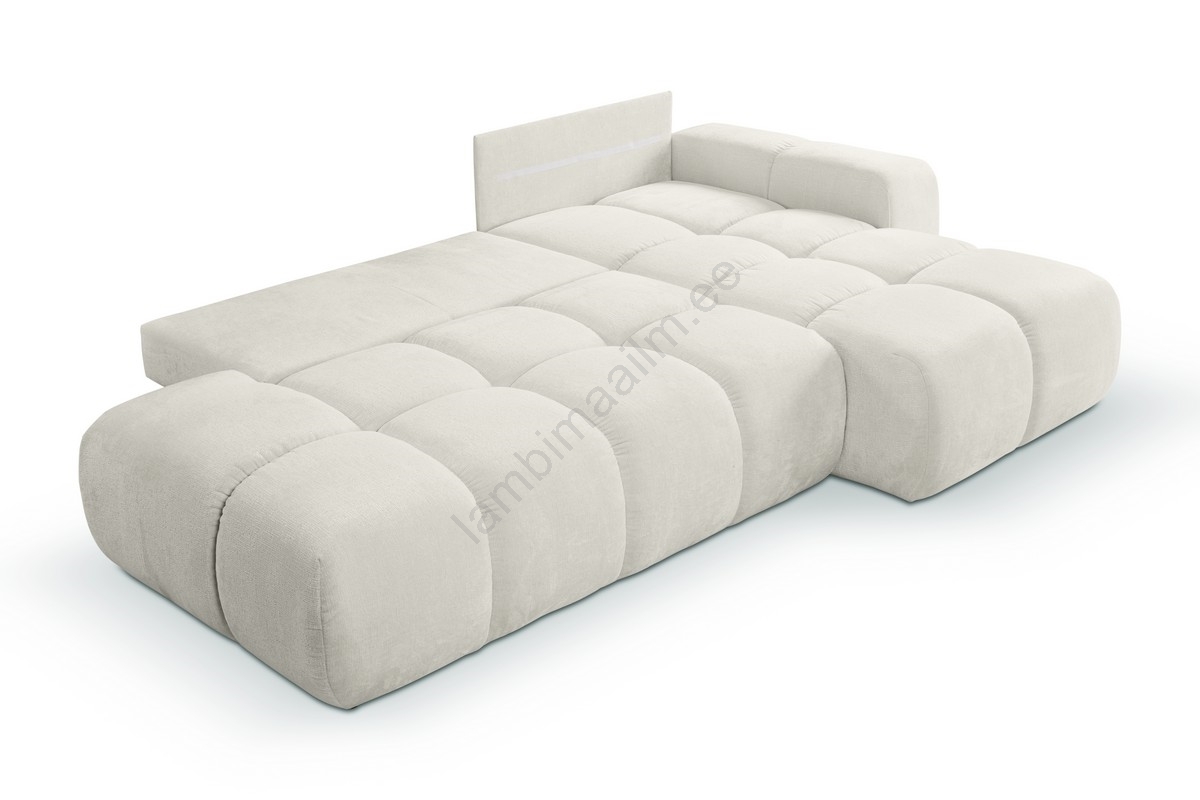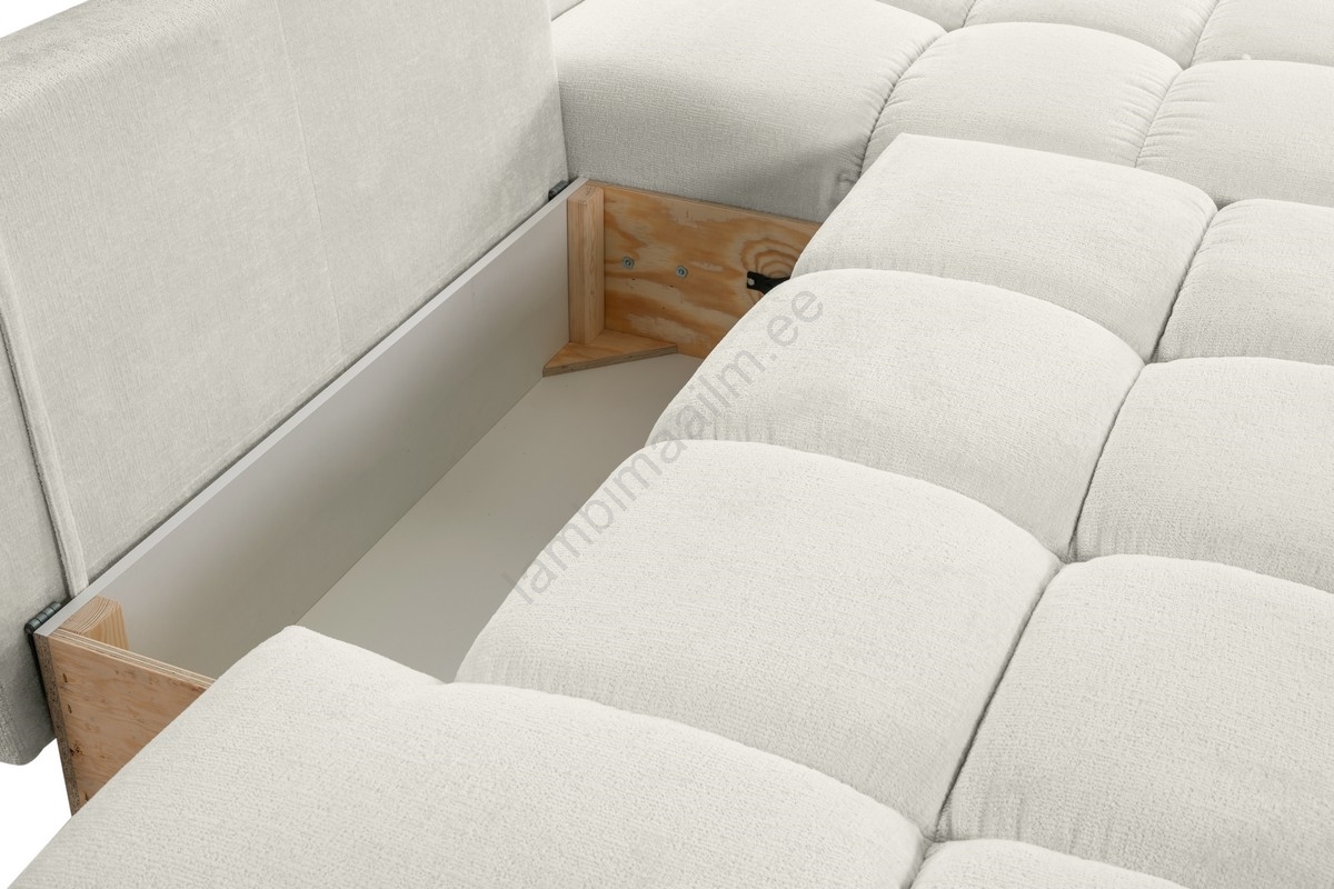 • ALMADA L-kujuline lahtikäiv polsterdatud nurgadiivanvoodi, parempoolne, helebeež, panipaigaga