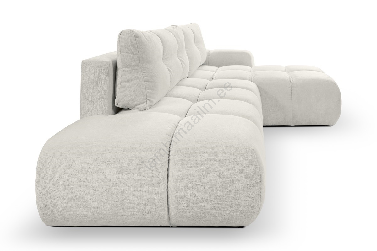 • Lahtikäiv vasakpoolne L-kujuline polsterdatud nurgadiivan ALMADA hoiuruumiga, helebeež