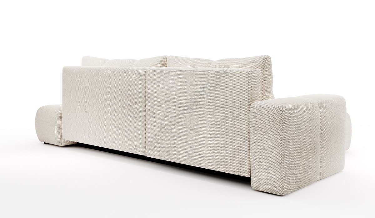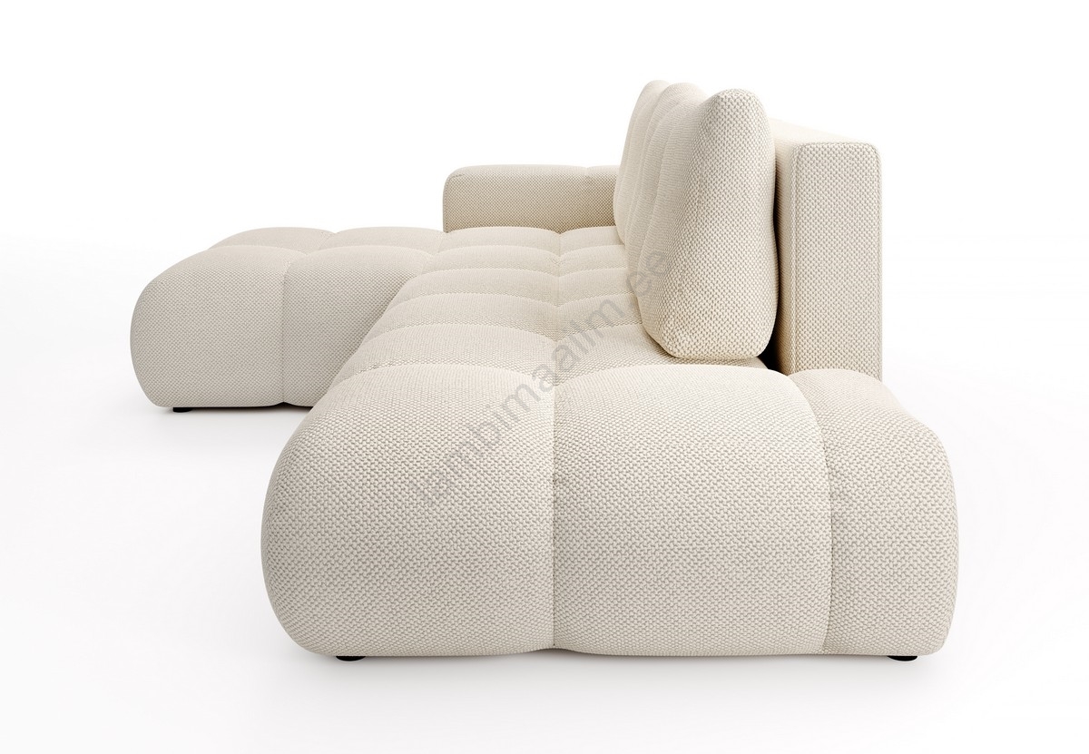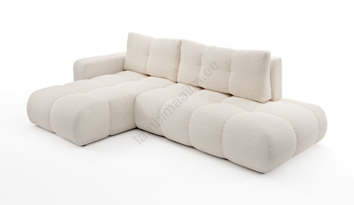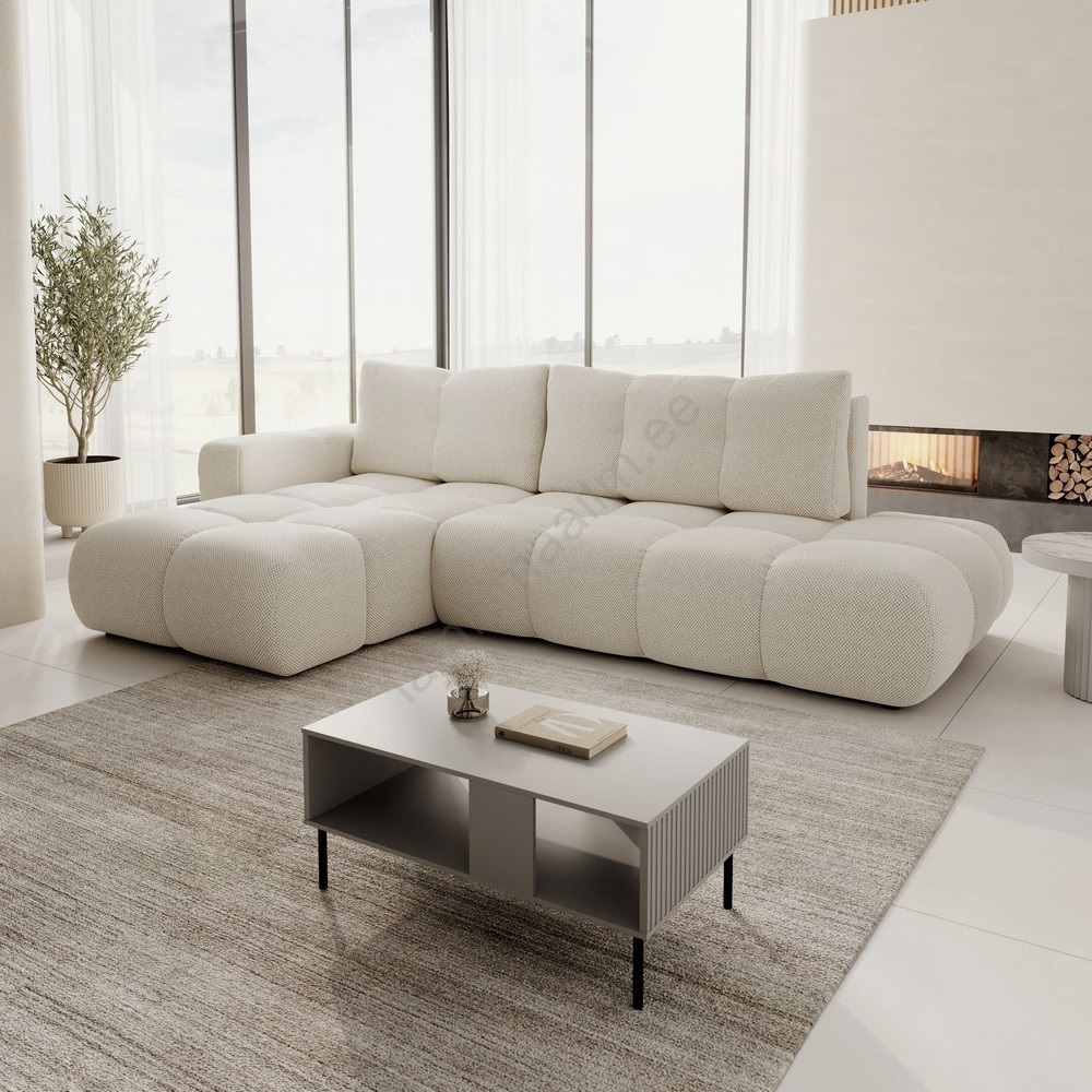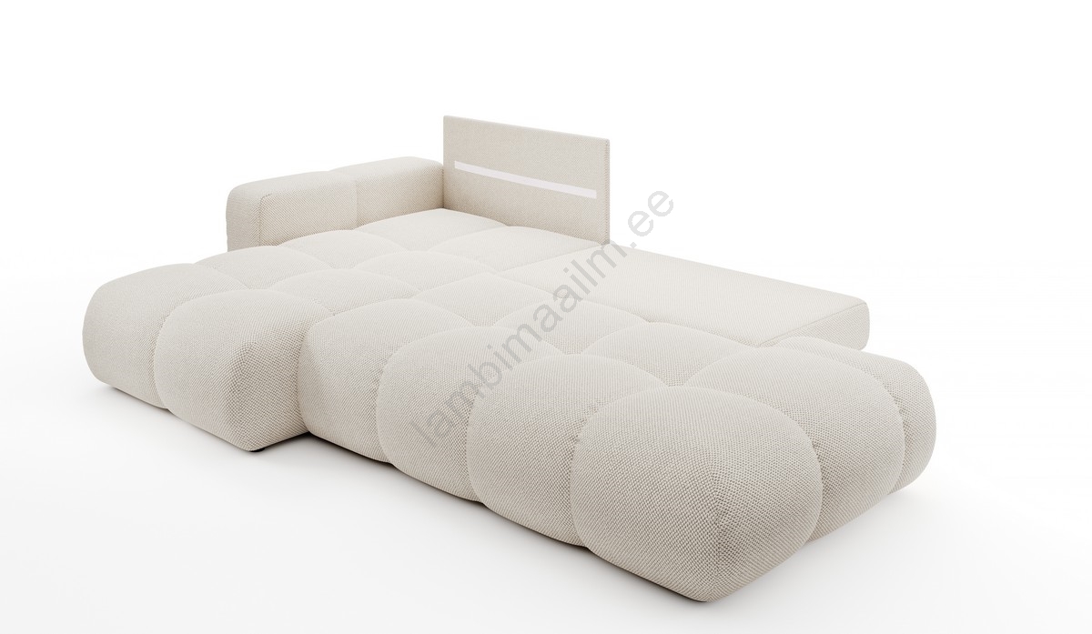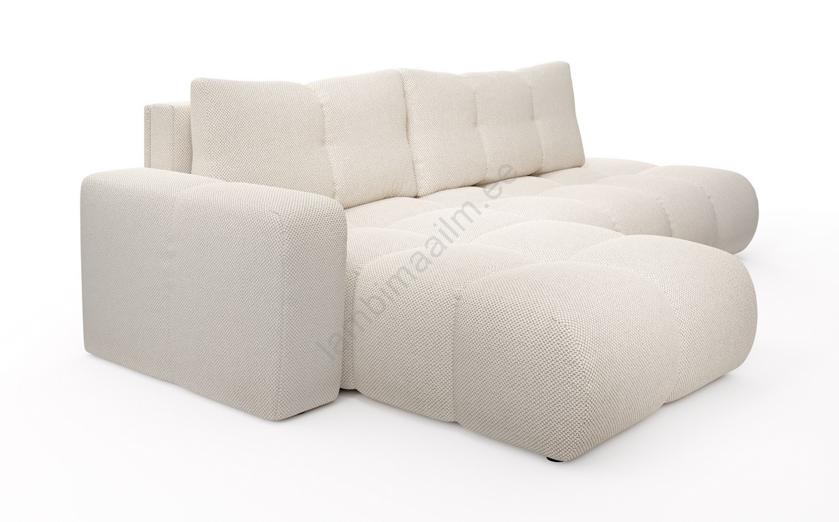• Lahtikäiv polsterdatud L-kujuline nurgadiivan ALMADA, parempoolne, hoiukastiga, hele beež