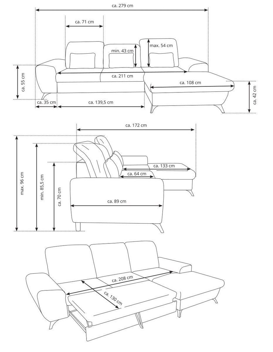 • Elegantsed mustad metalljalad (kõrgus 10 cm) annavad diivanile modernse ilme ning tagavad samal ajal stabiilsuse ja pika kasutusea.