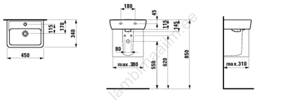 LAUFEN H8119510001041 - PRO valamu (lauale paigaldatav/seinakinnitus), 45x34 cm, keraamiline, valge