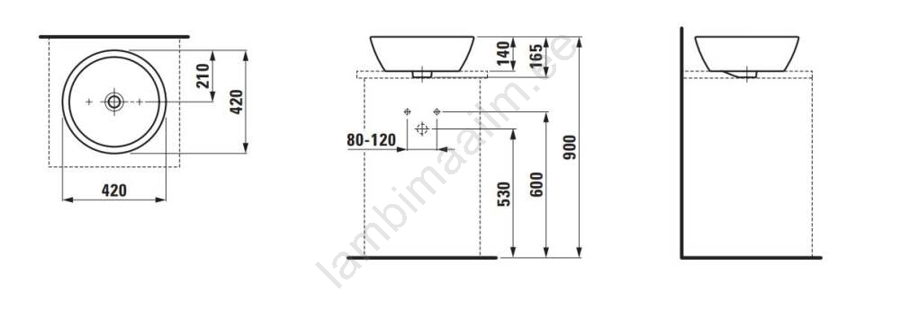 LAUFEN H8129620001091 - Lauapinnale paigaldatav valam PRO, Ø 42 cm, keraamika/valge