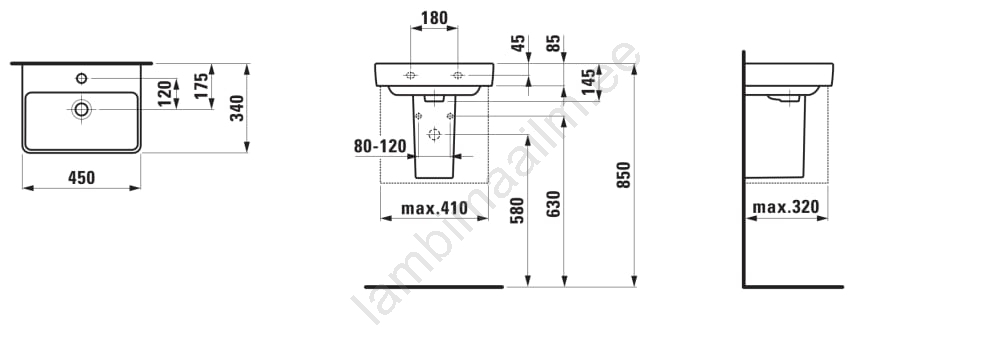 LAUFEN H8159610001041 - Valamu lauaplaadile/seinale PRO 45x34 cm keraamika/valge | Lambimaailm