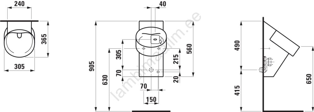 • Pissuaar on ääreta, mis välistab mustuse ja bakterite kogunemiskohad.
