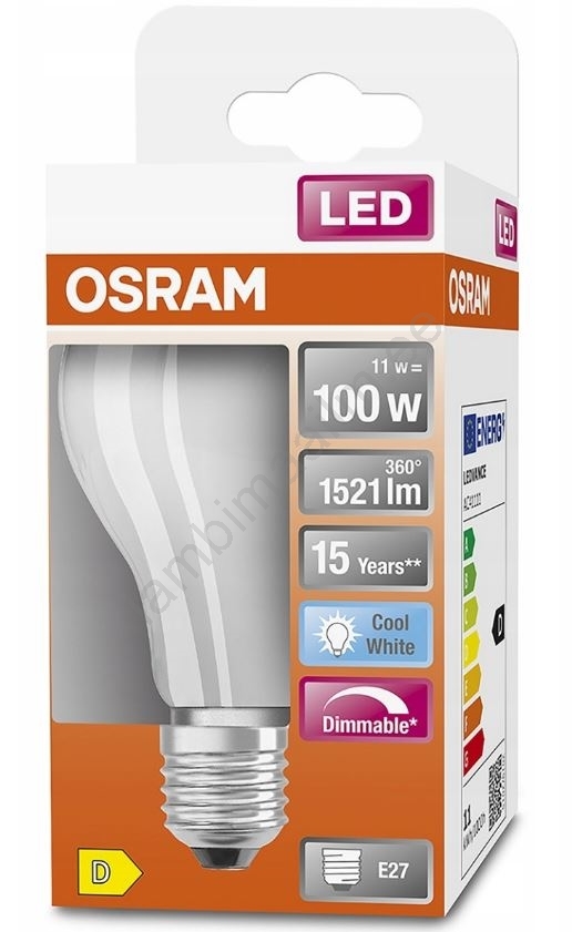 LED Hämardatav pirn RETROFIT A60 E27/11W/230V 4000K - Osram Kvaliteetne disain tagab teie interjööri täiusliku valgustuse. Kategooria E27 on pühendatud sama keermega pirnidele. Meie e-poes saate valida traditsioonilise hõõgniidiga pirnide või moodsate LED pirnide vahel, mis on energiasäästlikumad ja pikema kasutuseaga.