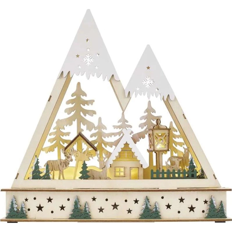 • Nikerdatud dekoratsioon lumiste mägede motiiviga ja metsaelementidega — ideaalne täiendus teie pidulikule advendikaunistusele.