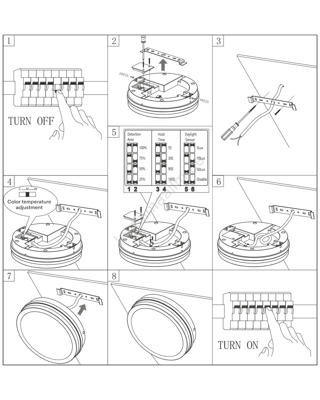 • Reguleeritav valgustusaeg: 5 - 180 s.