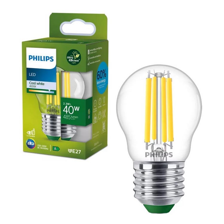 LED-pirn ULTRAEFFICIENT VINTAGE Philips P45 E27/2,3W/230V 4000K