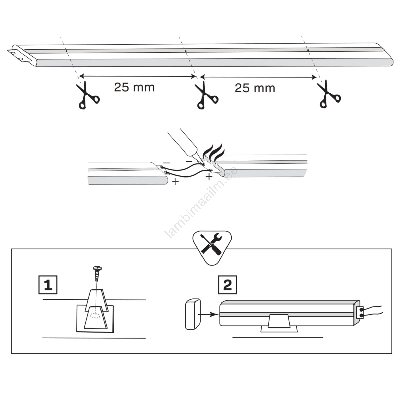 • Töötamiseks vajab see LED riba vähemalt 36W elektritoidel töötavat toiteallikat (ei kuulu komplekti).